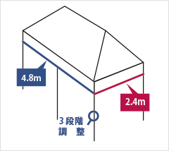 定価 183,700円~(税込) 当店販売価格 101,035円~(税込) サイズ 240cm×480cm 有効軒高 162cm~178cm 全高 277cm×293cm 収納サイズ 24cm×41cm×127cm 総重量 5W:45.0kg